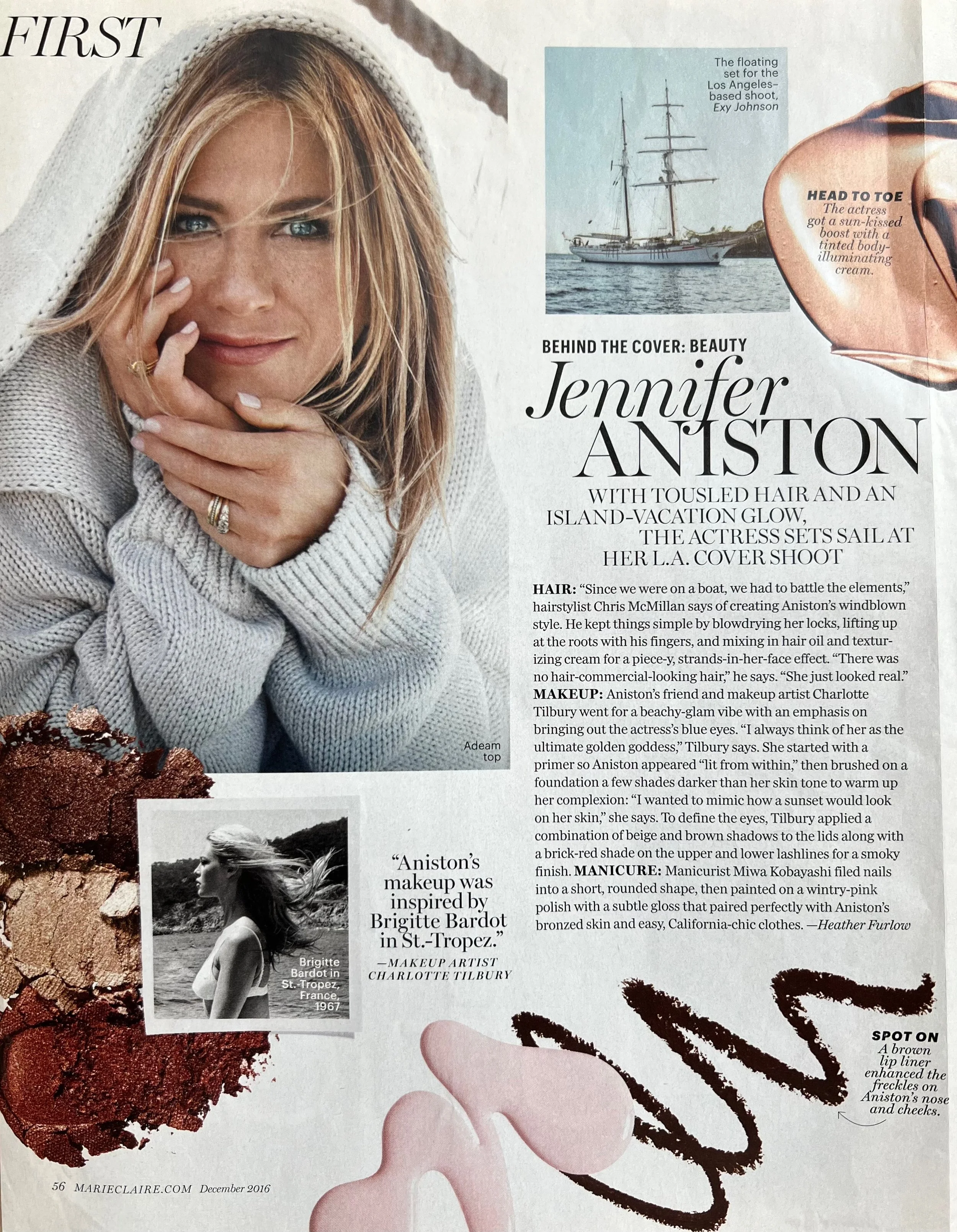 Beauty and fashion-focused stories for the pages of Marie Claire (above).